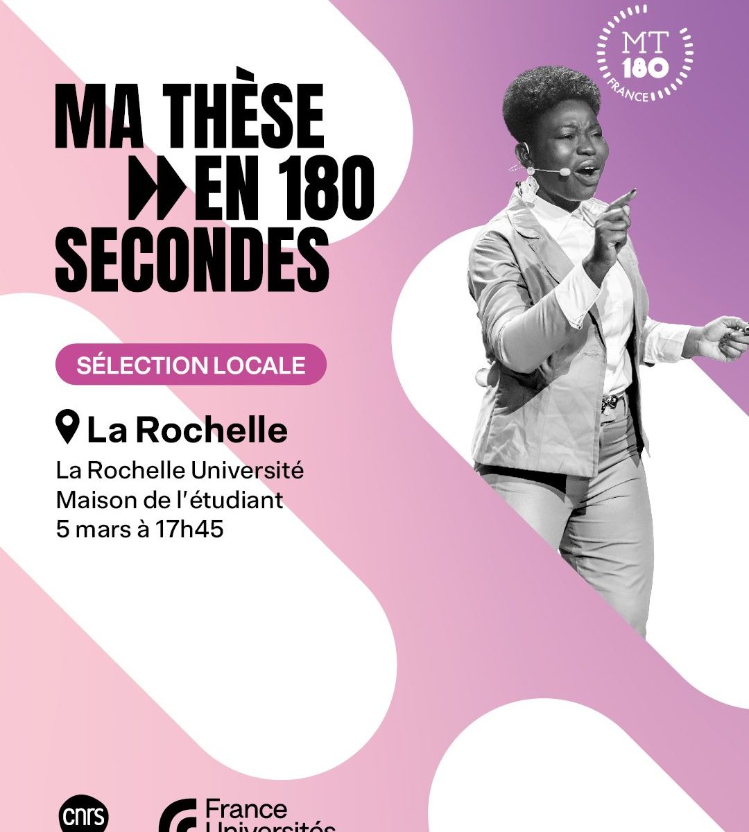 La Rochelle Université organise pour la 12e année consécutive le célèbre concours de vulgarisation scientifique : Ma Thèse en 180 secondes (MT 180).